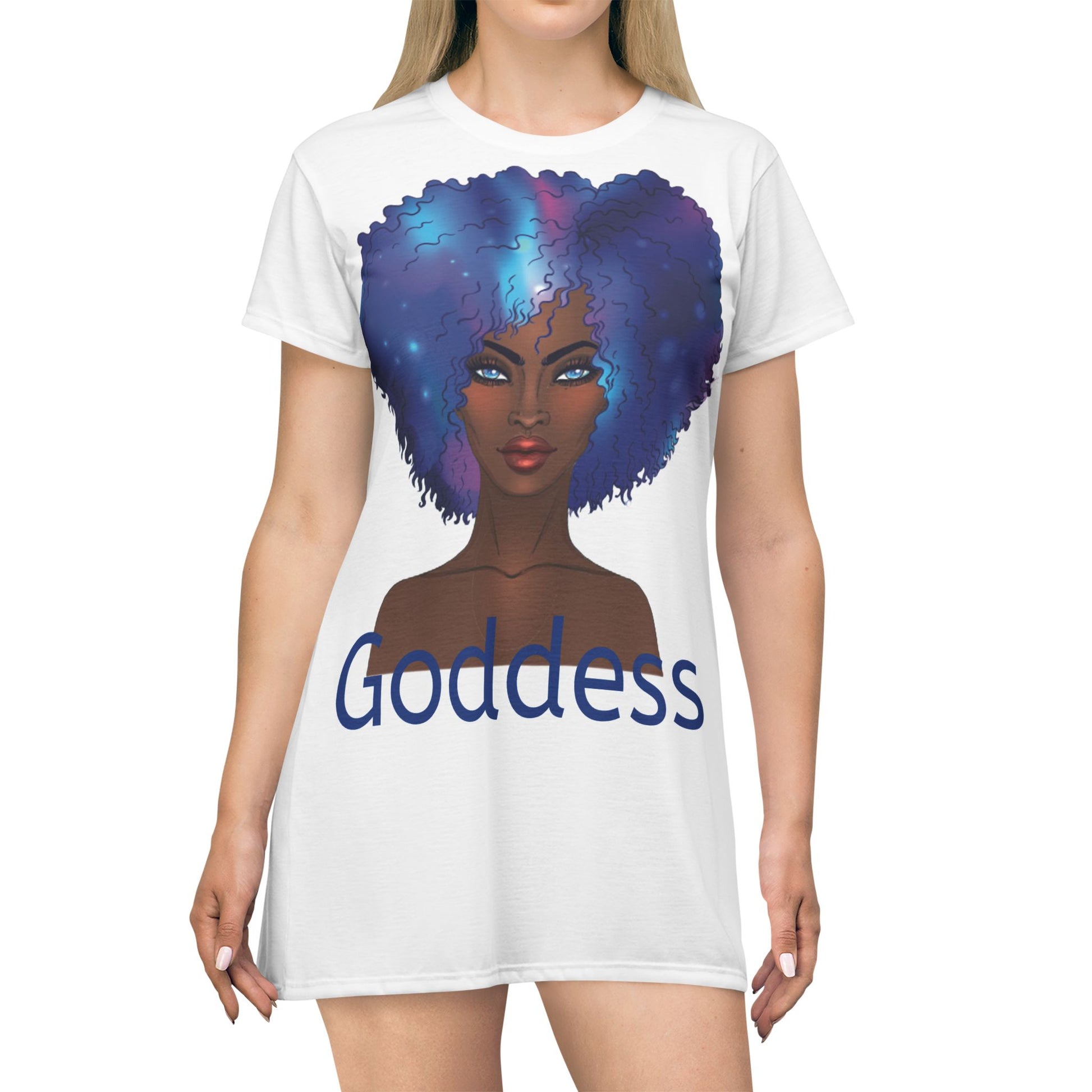 This Goddess T-Shirt Dress is tagless, custom cut and sewn to match every style. The fun prints will make this t-shirt dress a great piece to sell online.