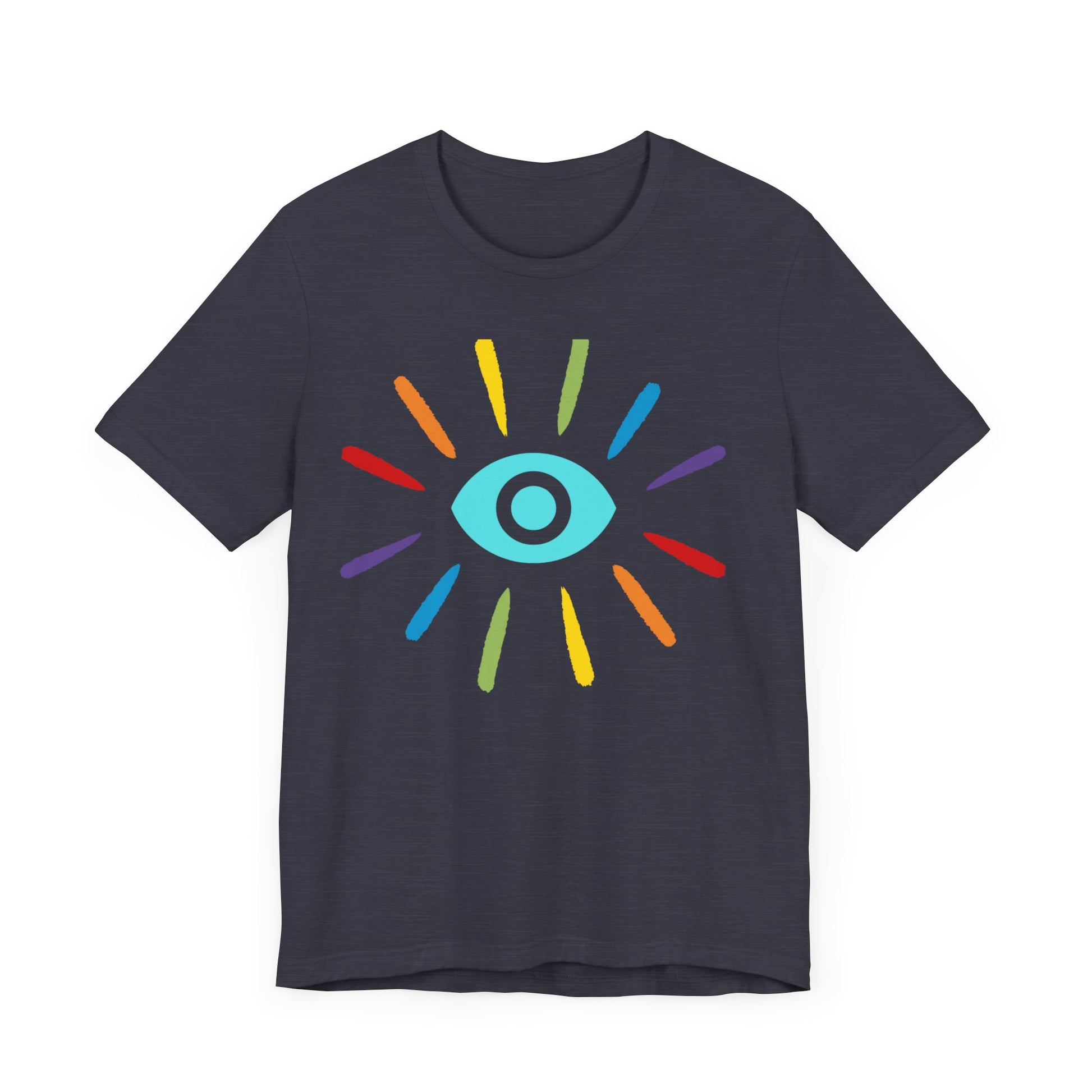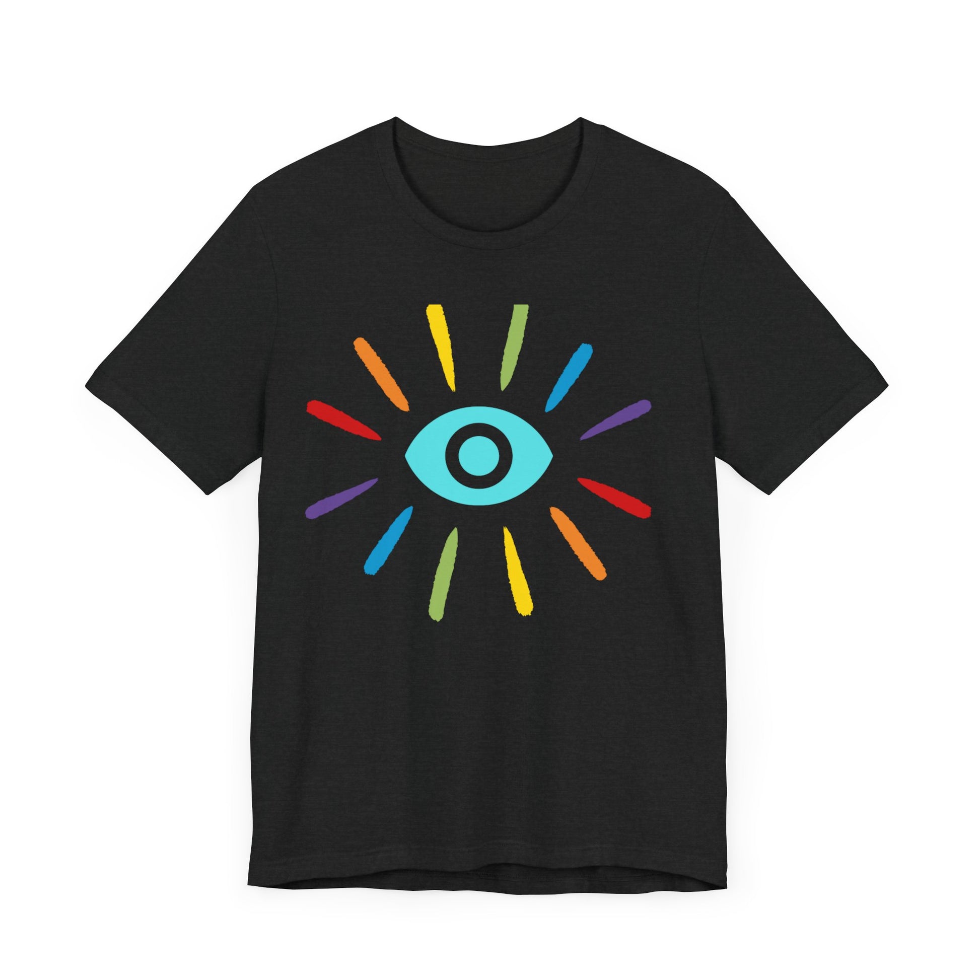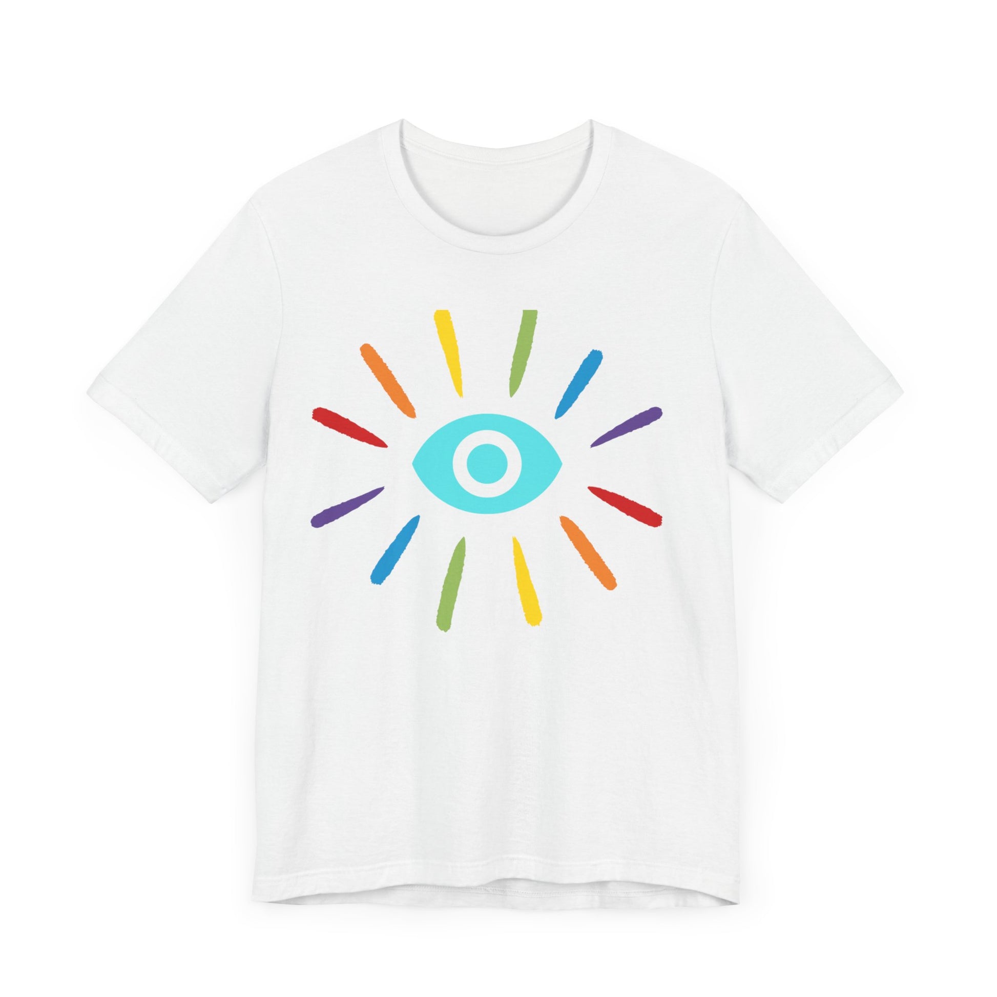 This classic unisex jersey rainbow Evil Eye Protection short sleeve tee fits like a well-loved favorite. Soft cotton and quality print make users fall in love with it over and over again. These t-shirts have-ribbed knit collars to bolster shaping. The shoulders have taping for better fit over time. Dual side seams hold the garment's shape for longer.