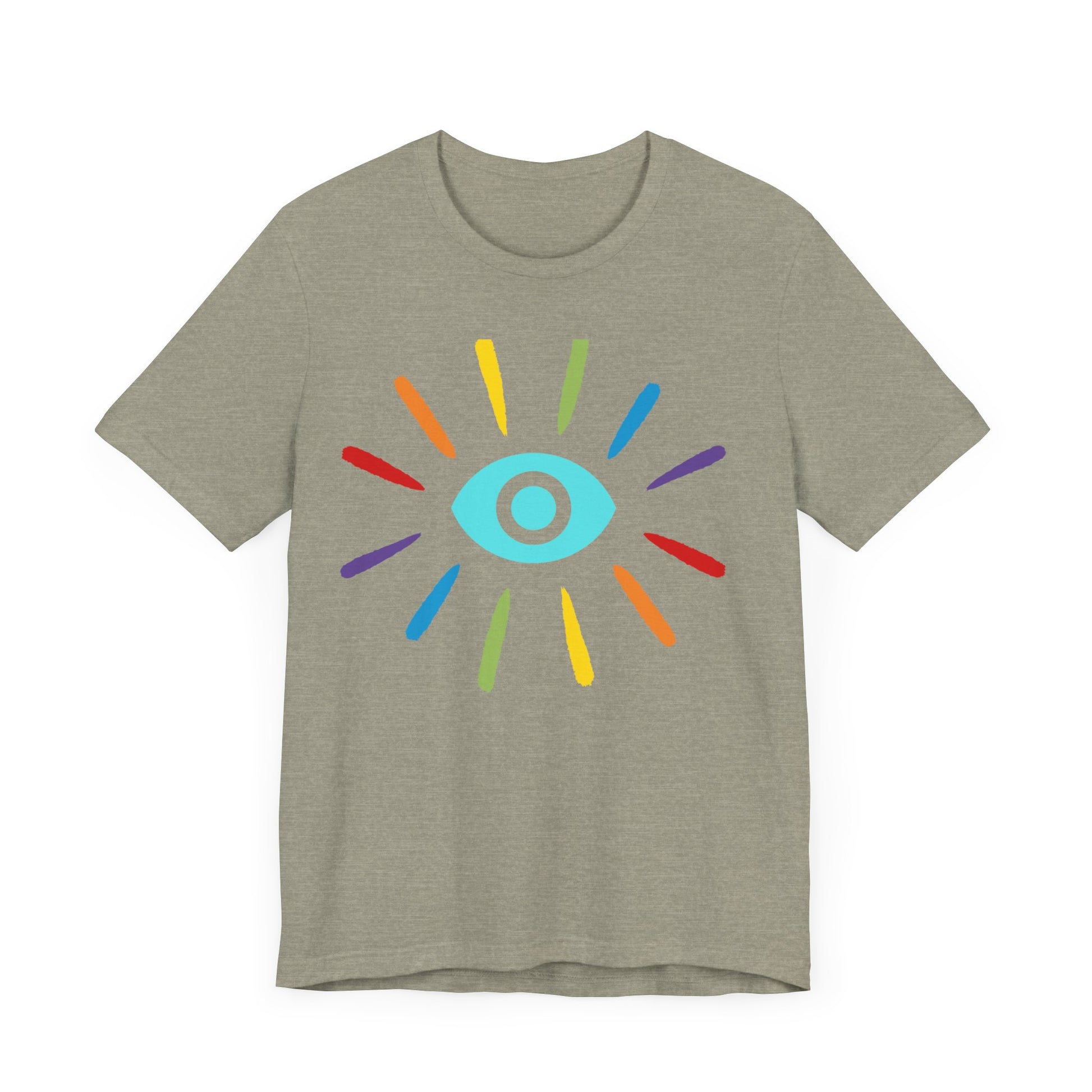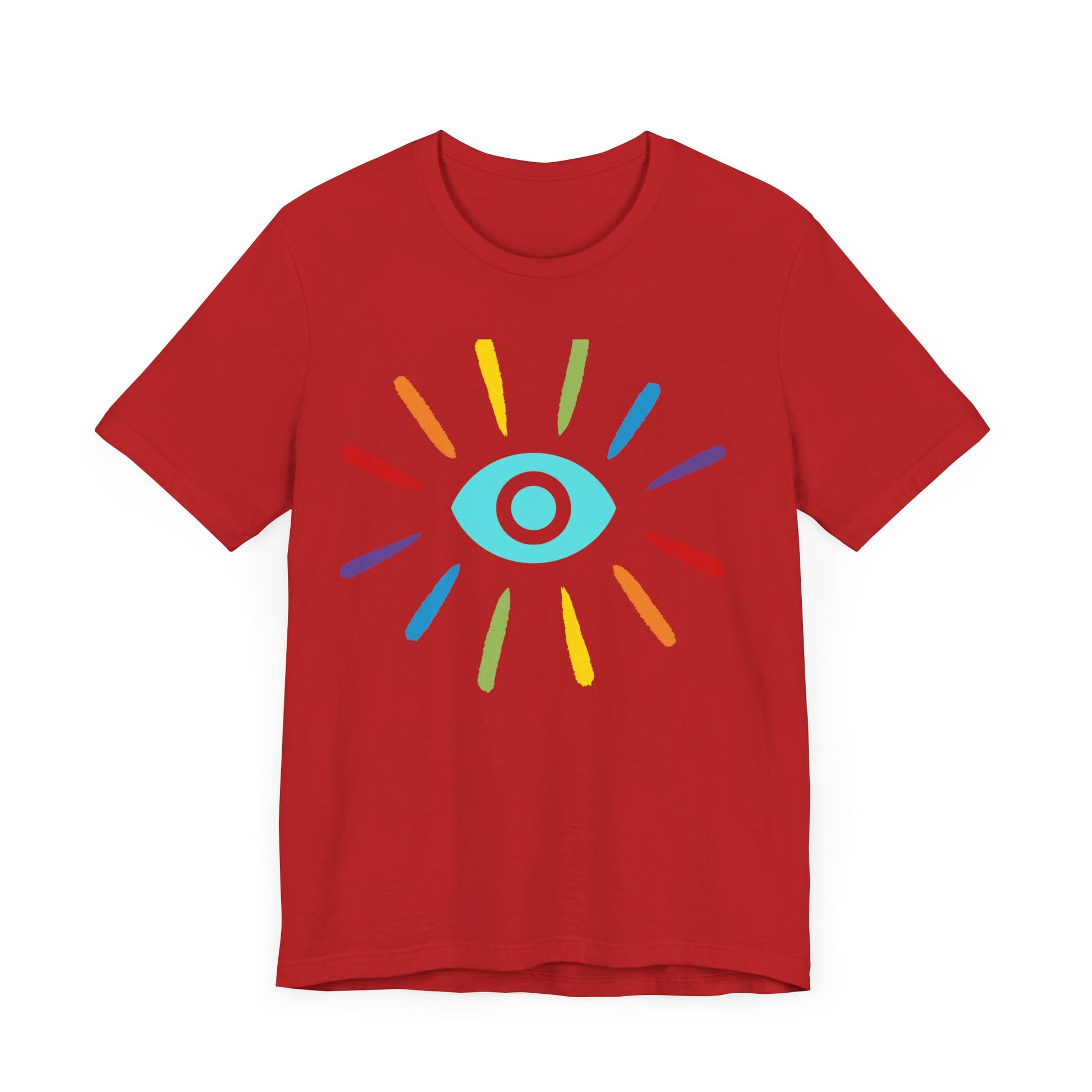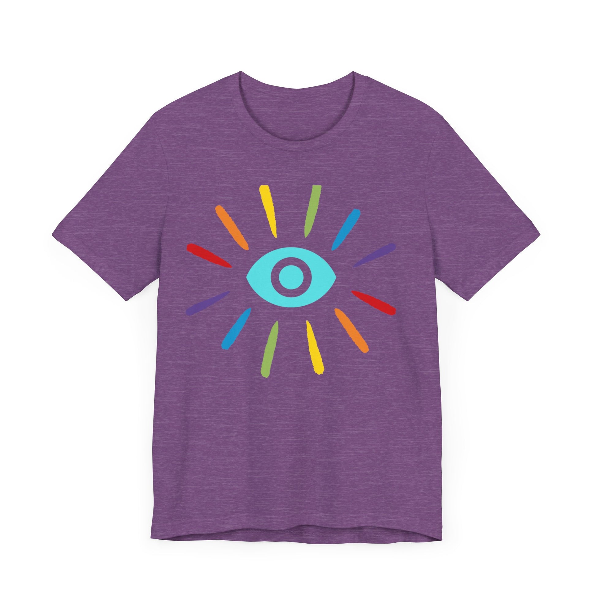 This classic unisex jersey rainbow Evil Eye Protection short sleeve tee fits like a well-loved favorite. Soft cotton and quality print make users fall in love with it over and over again. These t-shirts have-ribbed knit collars to bolster shaping. The shoulders have taping for better fit over time. Dual side seams hold the garment's shape for longer.